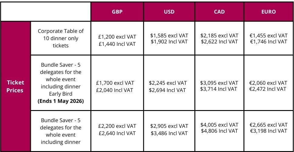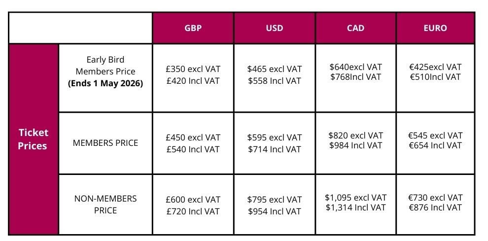 We are pleased to confirm that we have held the conference ticket prices at the 2025 rates for 2026.