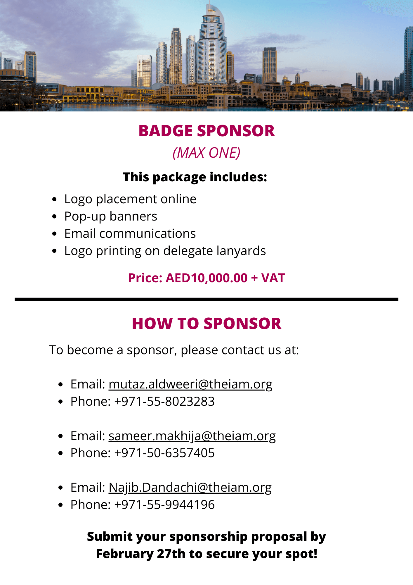 Submit your sponsorship proposal by 27 February 2026 to secure your spot!